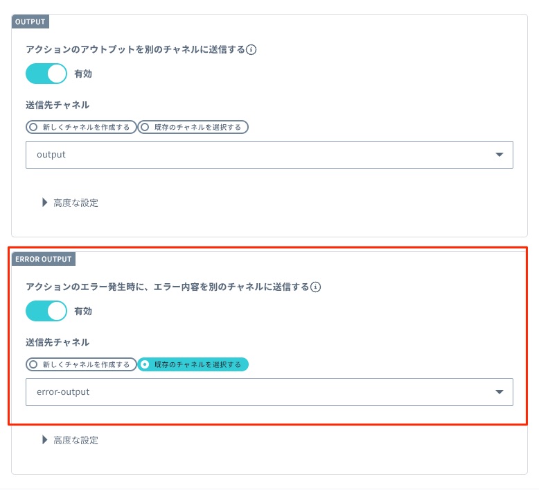 アクションにエラー出力用のチャネルが追加されます。