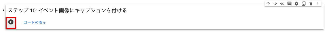 Colab 内にダウンロードしたイベント画像に対して、ライブラリを利用してキャプションを付けます。
