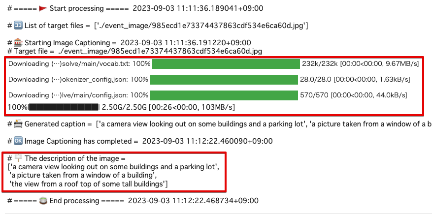初回実行時に、キャプション付けに利用するファイルが自動的に Colab にダウンロードされます。