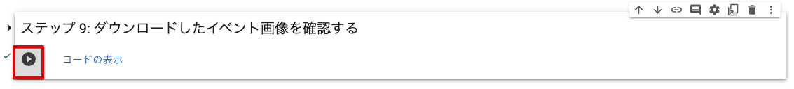 選択したイベントの画像をダウロードします。ダウンロード先は Colab 内です。この操作で「動画のエクスポート可能時間」は消費されません。