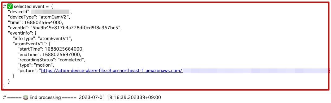 前のステップで設定した期間で、ソラカメ対応カメラがクラウドに記録したイベント一覧を取得して、イベントを 1 つ選択します。