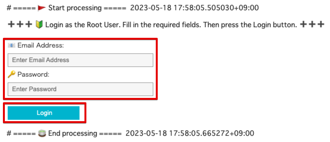 手順 2 の で「Root User」を選択した場合は、ルートユーザーのメールアドレスとパスワードを入力します。