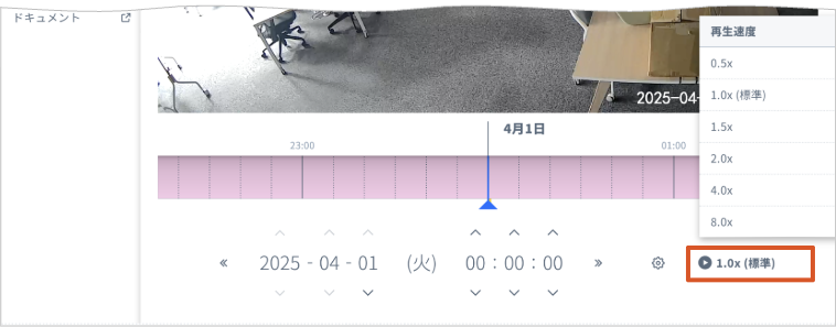 - 倍速再生 (特に「8.0x」など) を選択した場合、再生端末 (ブラウザ) の通信環境によっては映像の読み込みが追いつかず、指定した速度より遅く再生される場合があります。